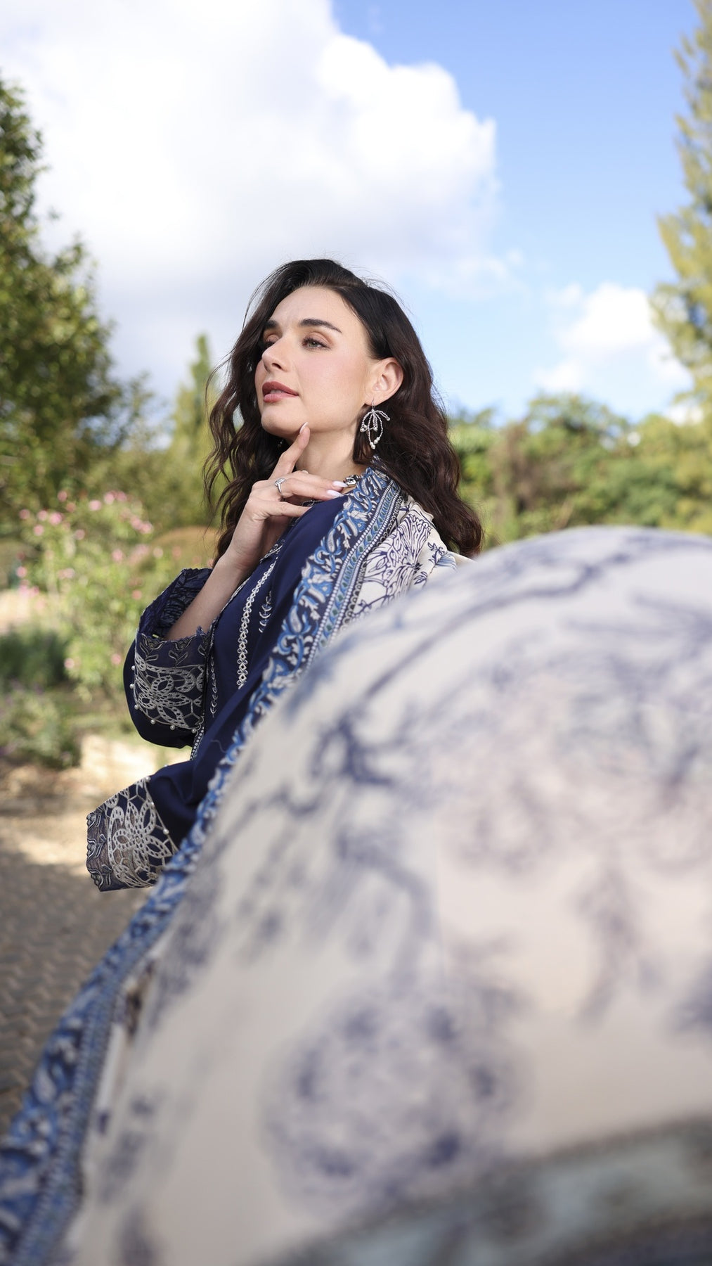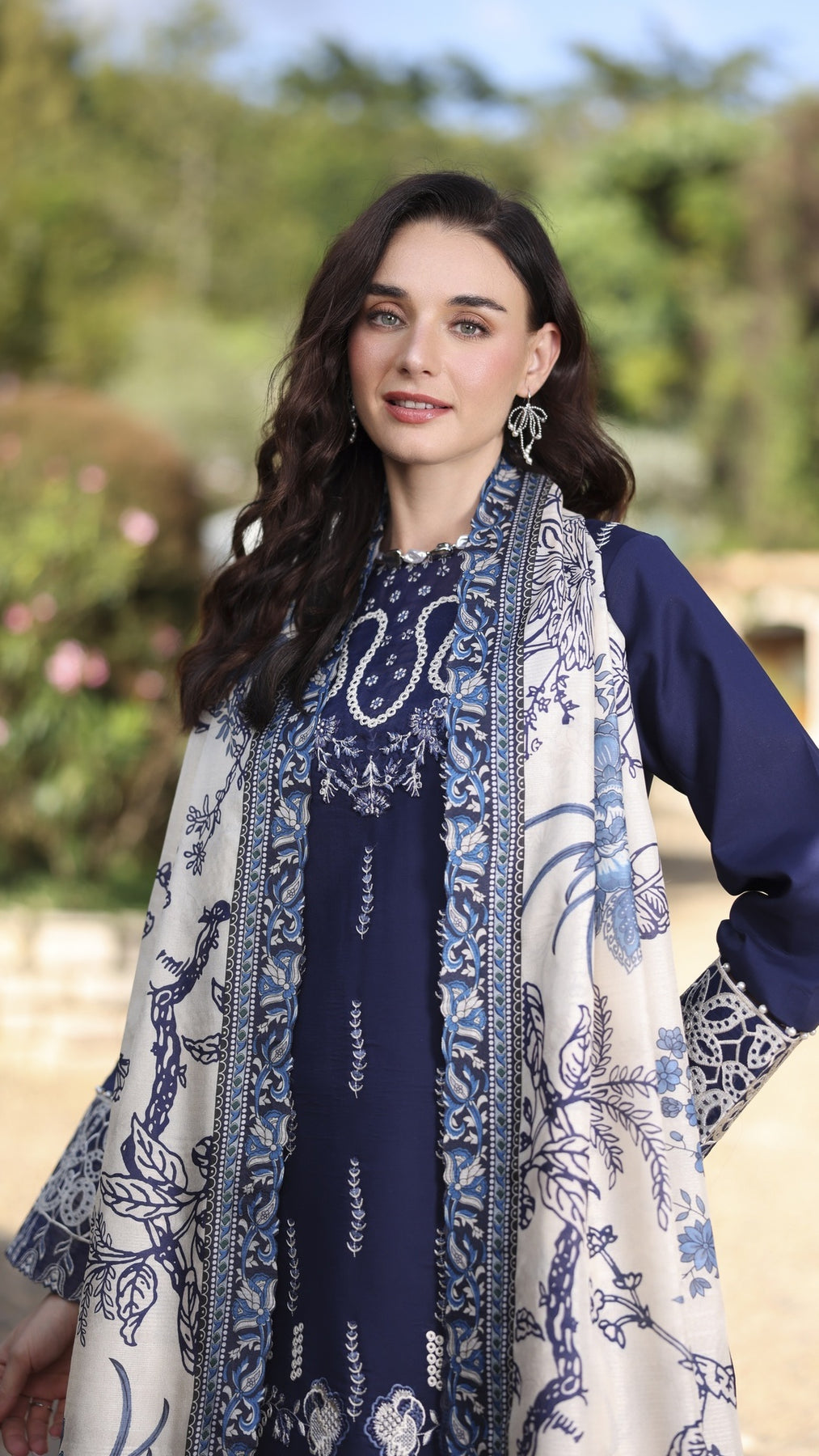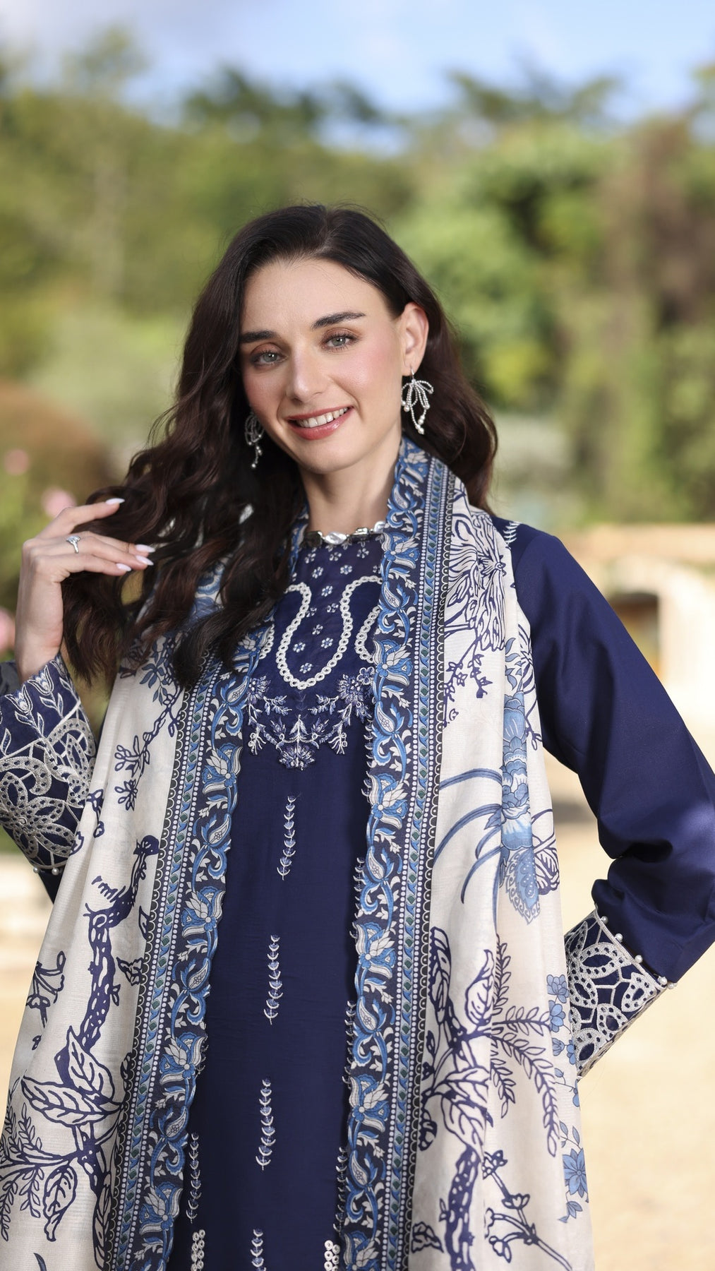 1. Dyed Lawn Front full Embroidered 1.30 yards2. Neck Embroidered Patch 3. Front Border Embroidered Patch 30 inchs 4. Sleeve Border Embroidered Patch 40 inchs 5. Dyed Cotton Trouser 2.75 yards6. Tasar Silk Printed Duppata 2.75 yards